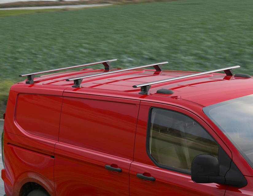 Sæt med 3 stk. tværbøjler med T-riller, aluminium, med aflåselige plastfødder.